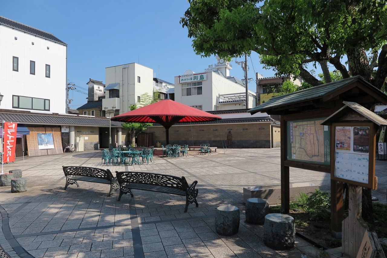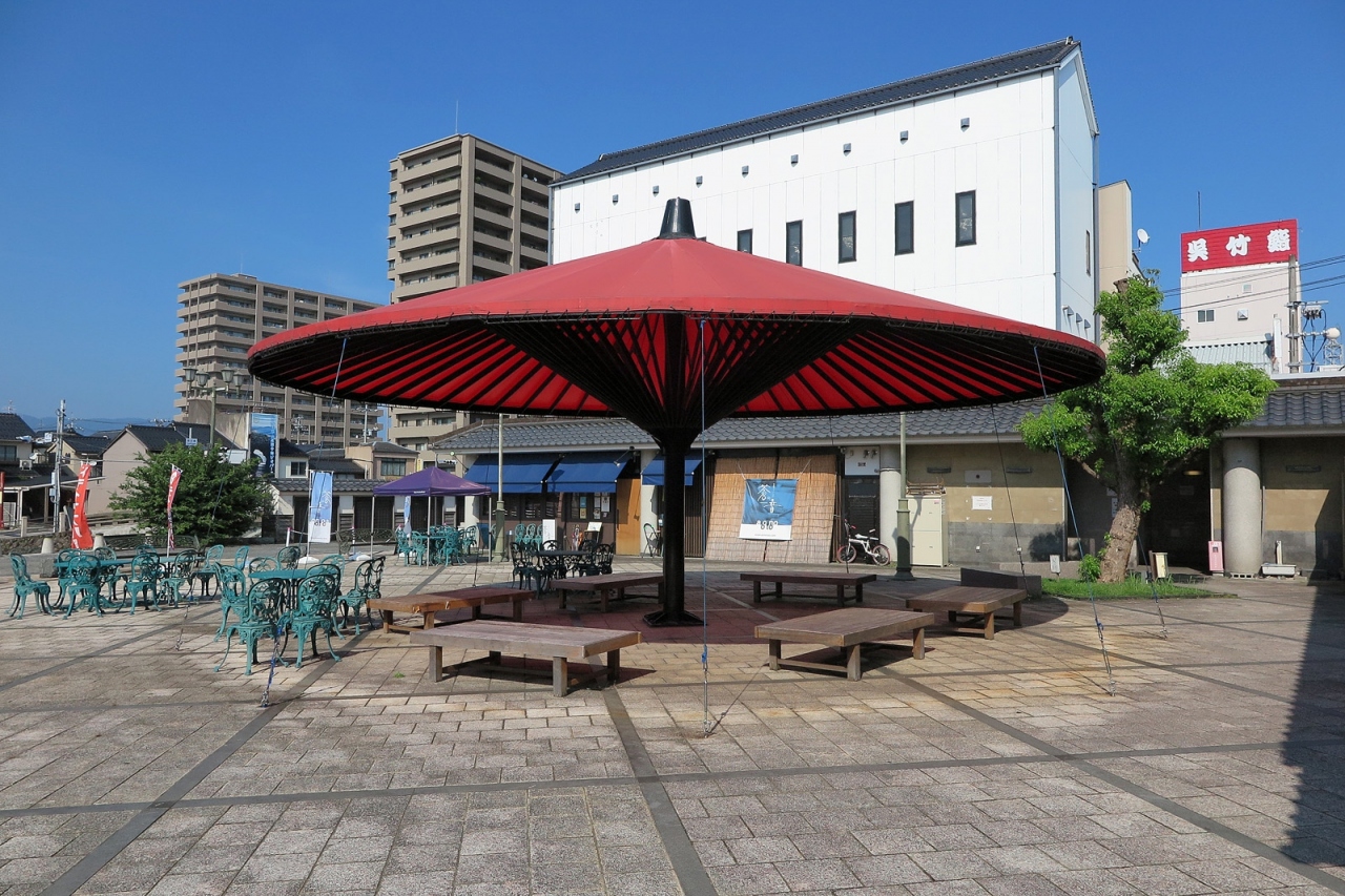 「カラコロ工房」から「京町商店街」へ向かう途中に立ち寄りました…といっても酷暑の日で、どなたの姿もありませんでした。もちろん小泉八雲さんのレリーフはパチリましたが、逃げるように日陰に退避。川沿いにあり、気候のいい時であればビールでの飲んでいたい場所だと思います。