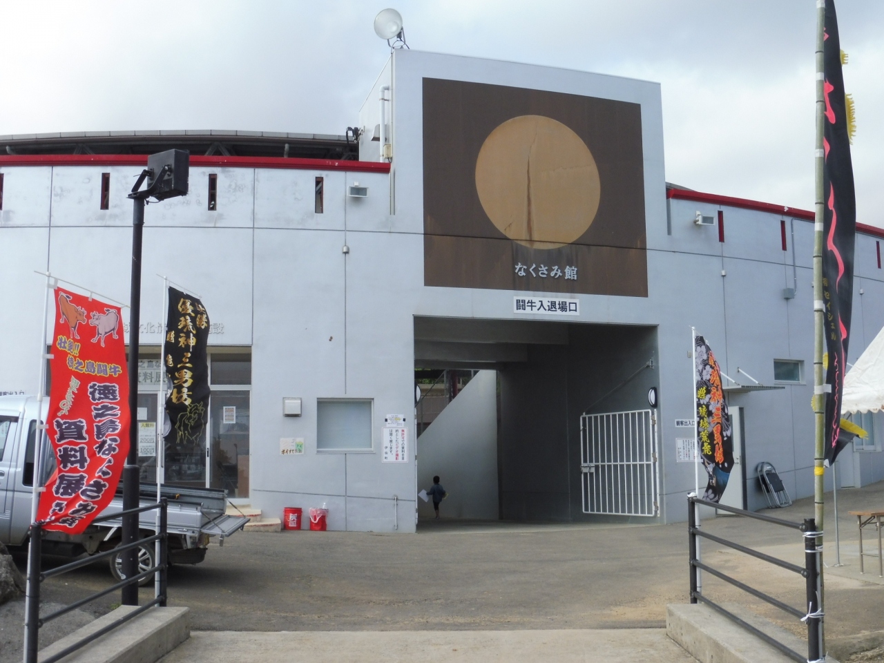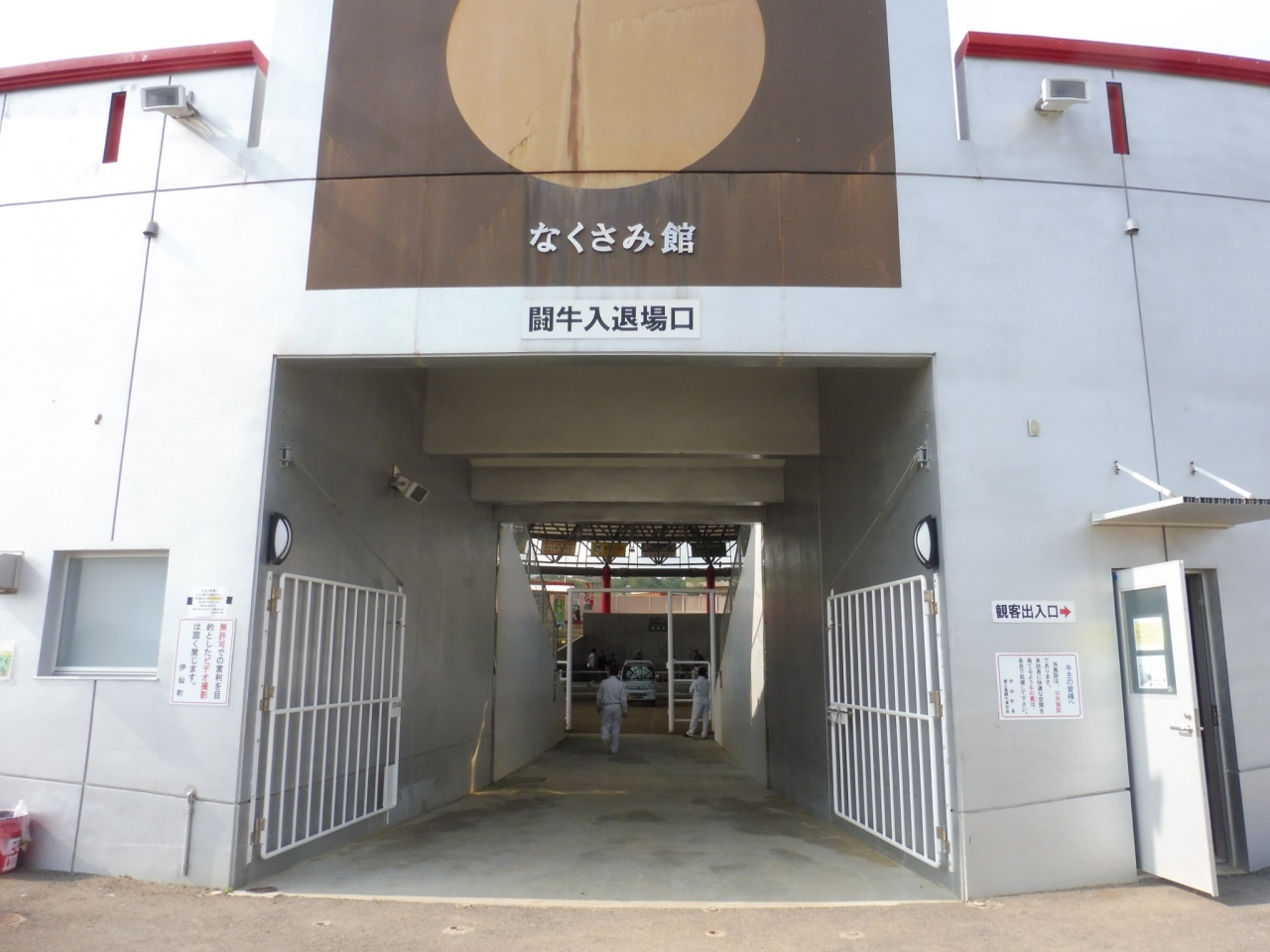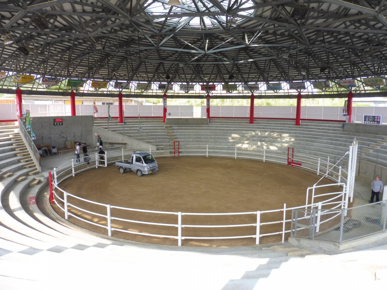 ローマのコロッセオを小さく小さくして屋根を付けたような闘牛場です。