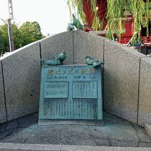 大きな立派な青銅製の歌碑には、かわいらしい鳩もちょこんと載っかっています。