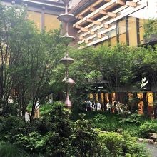 レトロなレンガ造りの外観、緑豊かな中庭は癒しの場。