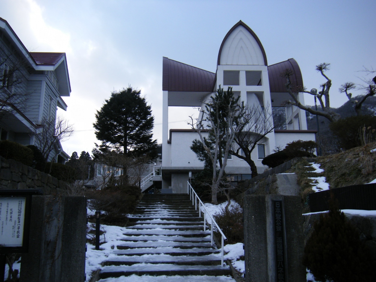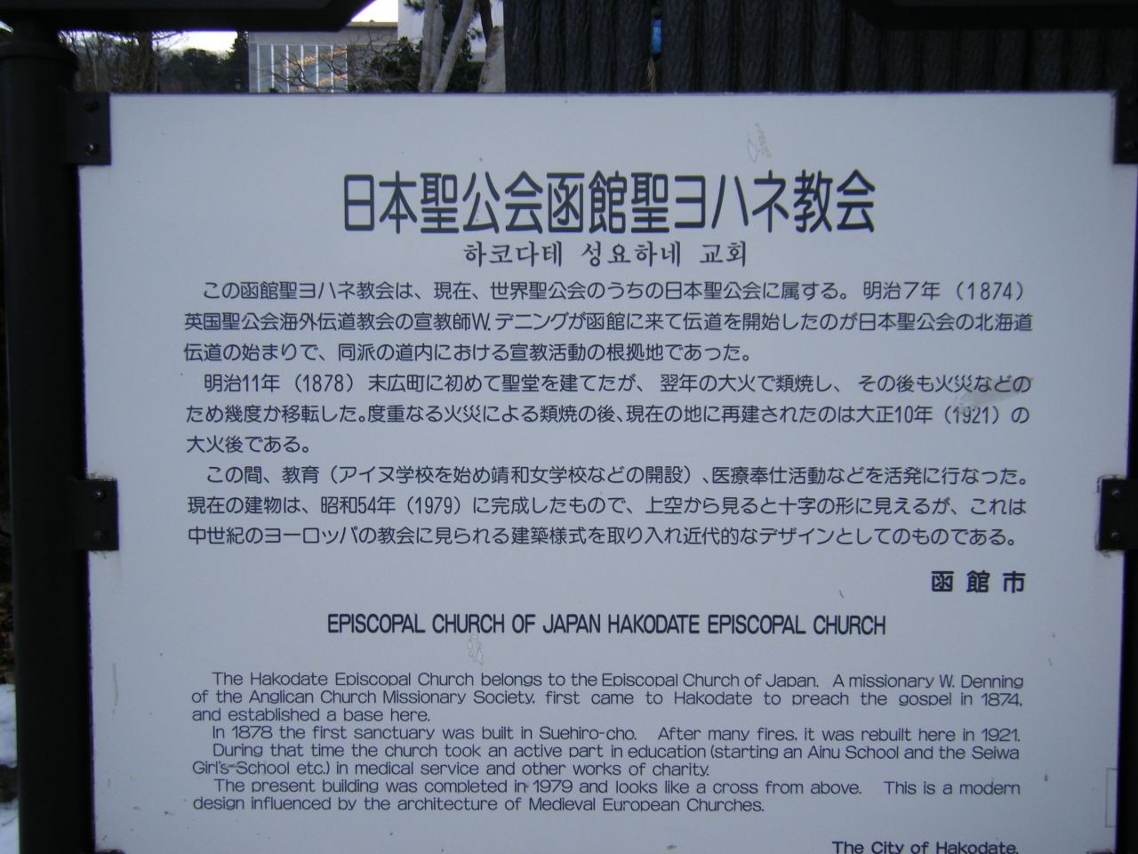 2020年1月に函館旅行をした際に立ち寄りました。函館山に向かって伸びる「大三坂」のさらに先にある「チャチャ登り」と呼ばれる坂道の途中、函館ハリストス正教会の正面にある教会になります。明治11年(1878年)に初めて聖堂が建てられたのが始まりで、現在の建物は今から40年ほど昔の昭和54年(1979年)に建てられたものになります。この辺りにある教会の中では比較的新しい建物になりますね。ユニークな形状の教会ですが、函館山山頂から見ると「十字形」の形に見えるそうです。ちょっと寂しい感じもしましたが、教会自体はとても綺麗でした。