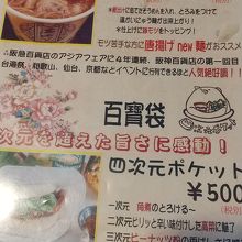 難波駅から少し歩きますが、十分アクセス可能です。メニューは日本語での表記や写真もあり、わかりやすいです。屋台料理ということで、大腸麺線をいただきました。大と小があり、大は500円、小は400円です。にゅう麺をかつおだしでいただきました。モツとパクチー玉ねぎの揚げたものがトッピングされ、優しいお味。途中でラー油と黒酢で味を変えることもできます。ラーメンと違い、スープまで全部いただきました。
