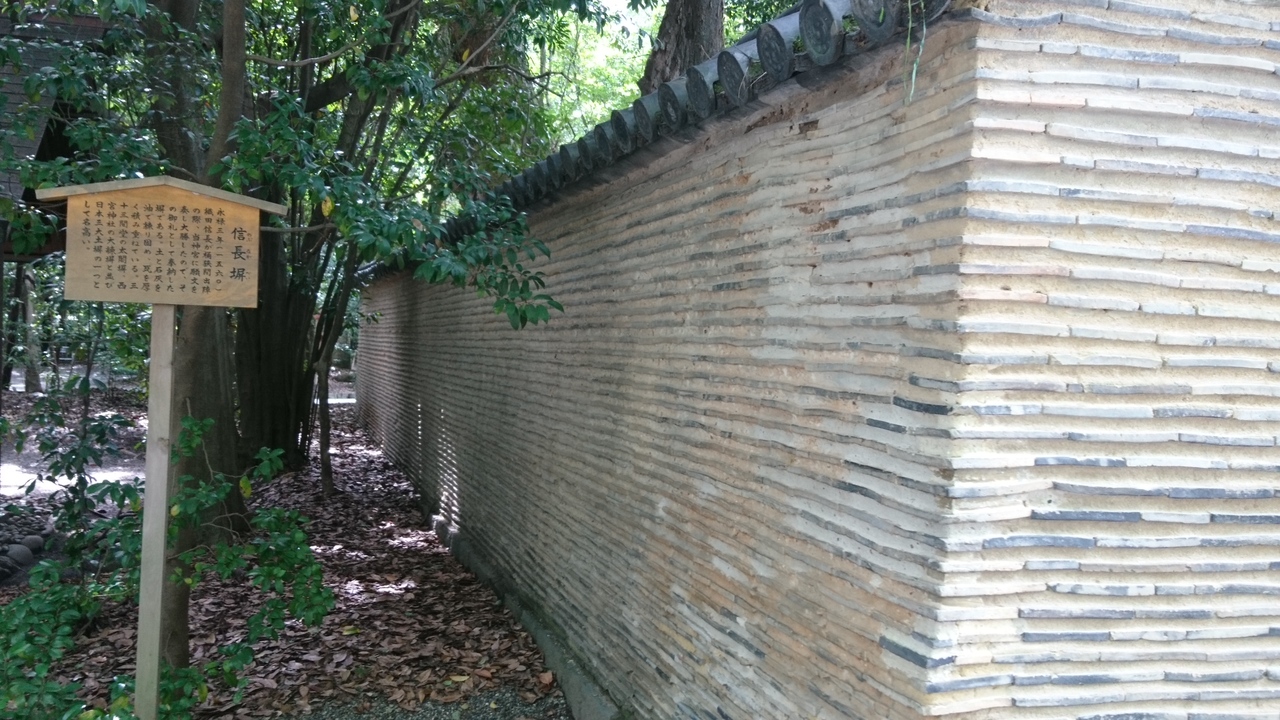 織田信長が今川義元を桶狭間の戦いで勝利し、戦勝祈願のお礼として奉納したのが信長塀です。