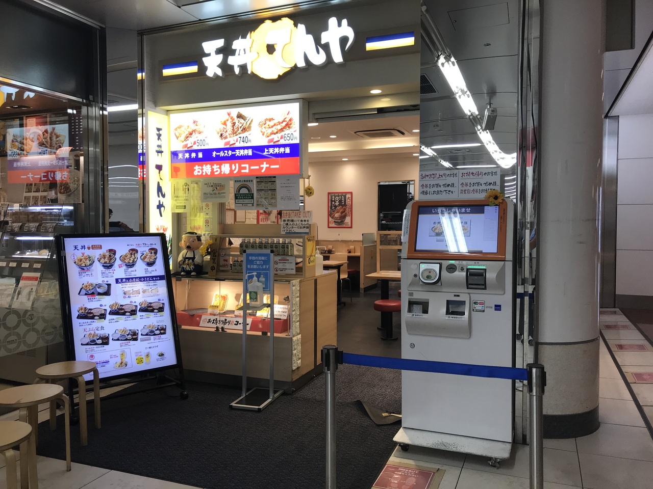モノレール羽田空港第2ターミナル駅の改札口を出て左側にあります。店舗は街中のてんやと変わらず。支払いに交通系ICカードの利用も可能。