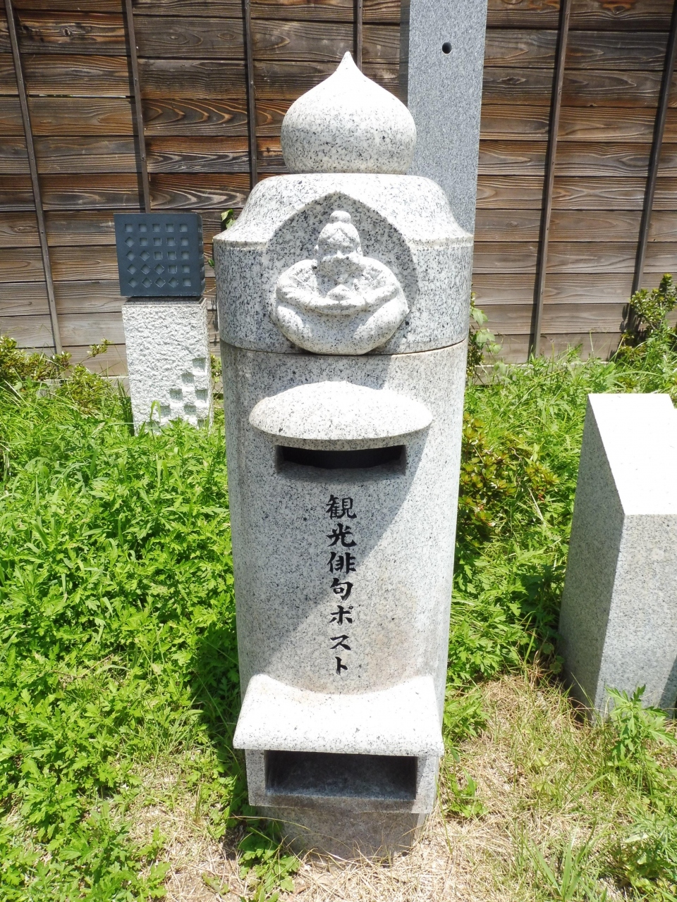 この広場はかつて広場の先の丘の上に見える伊佐爾波神社境内で当時存在していた「放生池」を埋め立てて整備された為「放生園」と名前が付いたそうです。
