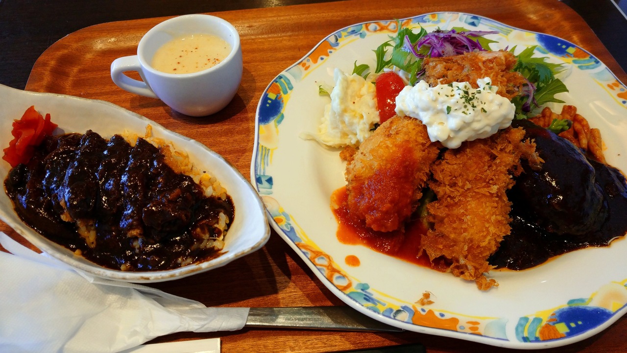 京都に以前訪れたときに偶然立ち寄りました。京都駅ビルに店舗があると聞いて行ってみました。店舗は広くありませんが、カウンター席もあり、一人でも利用しやすいです。ハンバーグにエビフライなどが盛り合わせになったセットはコストパフォーマンスが高いです。