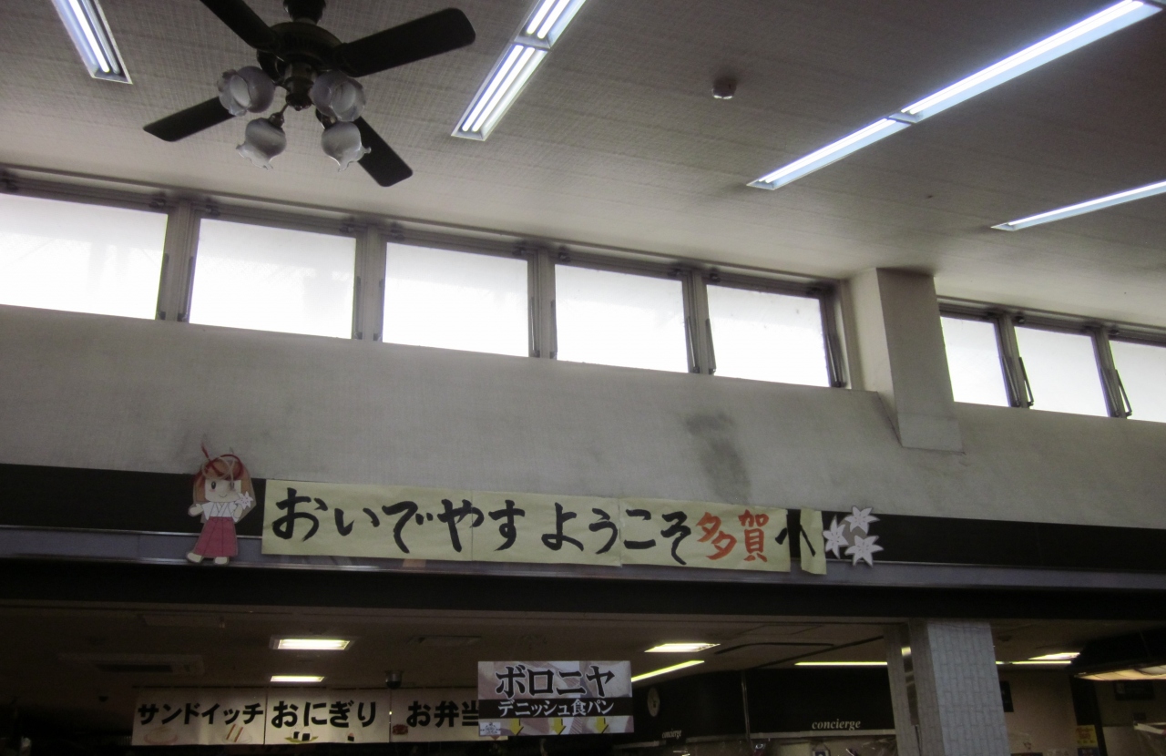 多賀サービスエリアは、途中の休憩に利用しました。デリコーナーでは、滋賀県のゆるキャラのひこにゃんのお土産が沢山売られていました。キーホルダー、文具、靴下までありました。売り場の面積も大きく人気のようですね。ひこにゃんクッキーなど、お菓子類もお土産に人気のようでした。