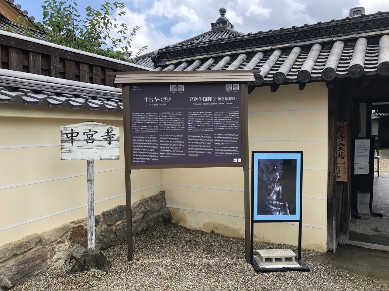 法隆寺東端の夢殿の敷地からすぐアクセスでき、しかも、法隆寺の入場料を払っていれば、100円の割引が効く尼寺です。中宮寺跡があるように、往時はとても広大な鳥を所有していたようですが、今はそこまで大きくはありません。小特退の母親をかたどったともいわれる菩薩半跏像は見もので、像のその落ち着いた表情には見入りました。