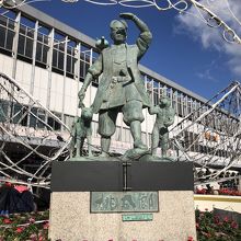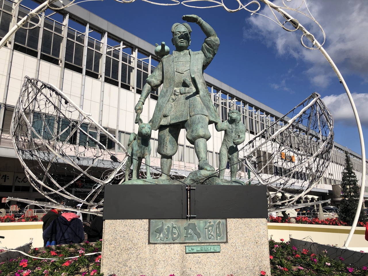 JR岡山駅前に立つ桃太郎とその左肩に乗る雉、両脇に立つ犬と猿の銅像です。「そうか、あれが鬼ヶ島か。」と手を翳して遠くを見る表情が見ものです。おそらく現地の住民にとっては当たり前の銅像かもしれませんが、観光客と思しき、自らも含めてですが、写真を撮っている人が多くみられました。観光客としては撮影すべき銅像です。
