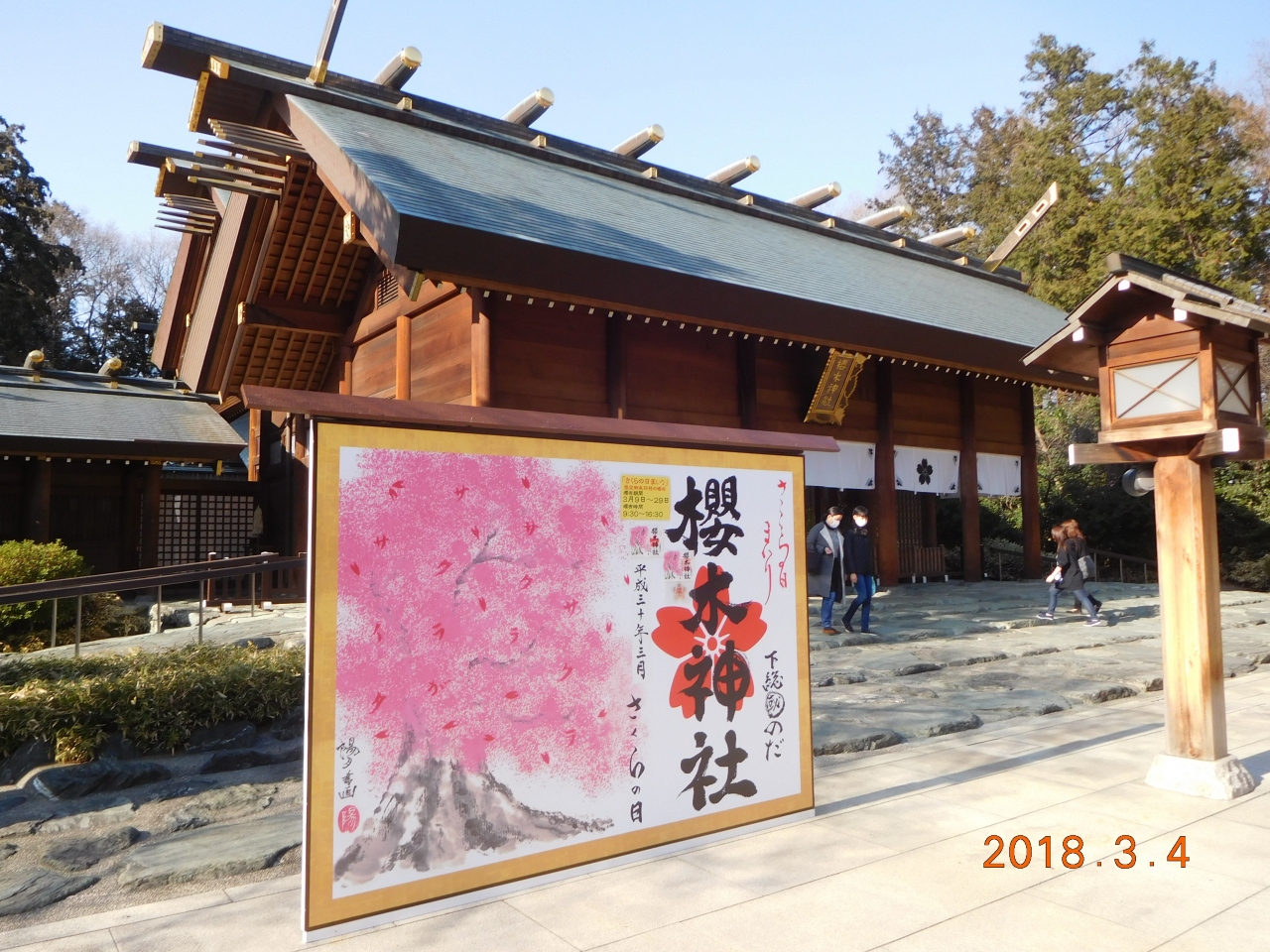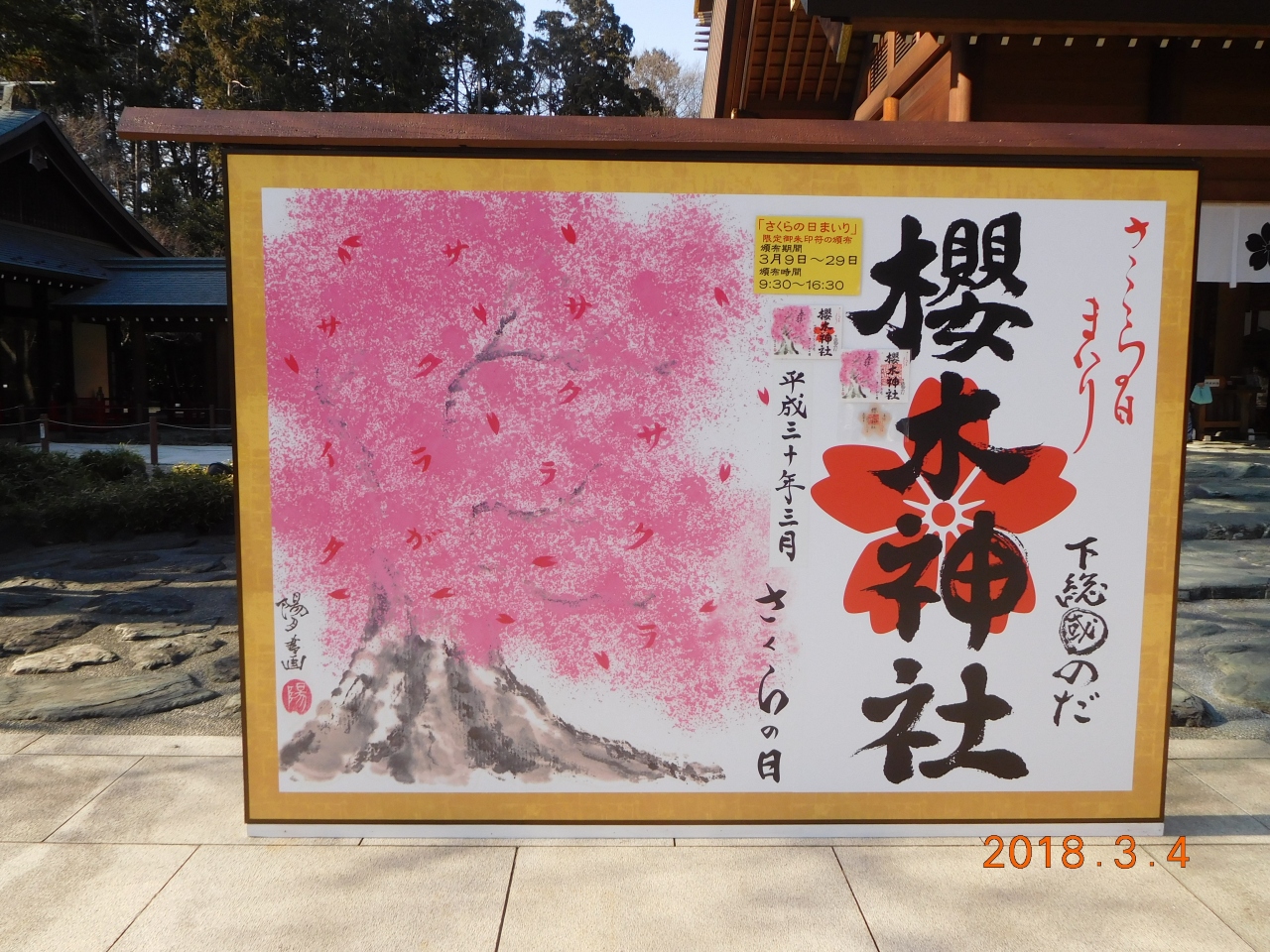 ちょうど桜の時期に行ったので、限定の桜柄の御朱印が大きく飾ってありました。