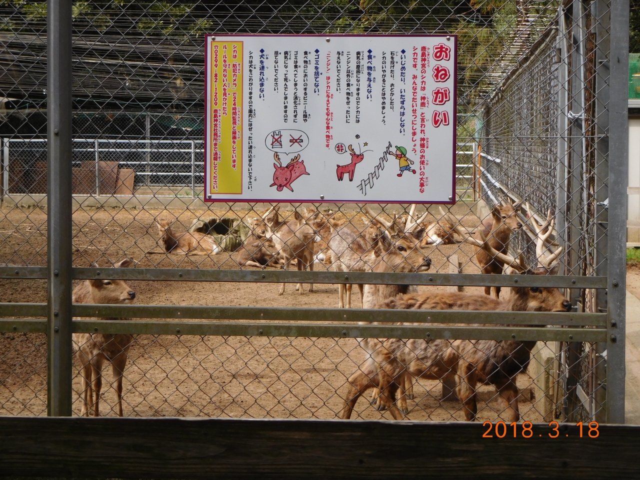 鹿は犬を怖がるそうなので、鹿園の中には連れ込まないよう注意が書いてありました。