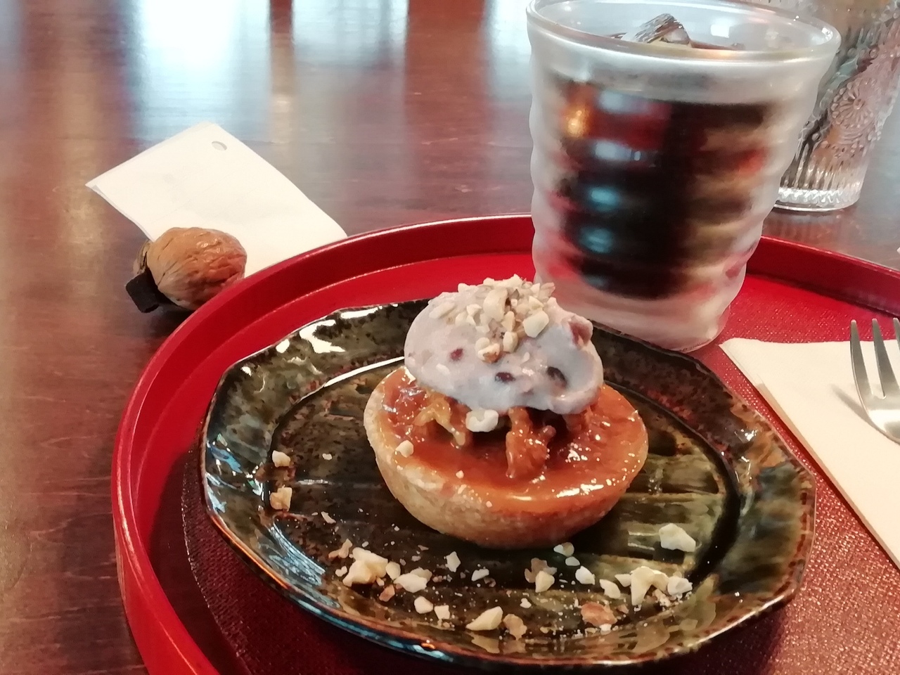 タルトは、キャラメライズされた胡桃とあんこのクリームが乗っていて、サイズは小さめですが満足感がありました。