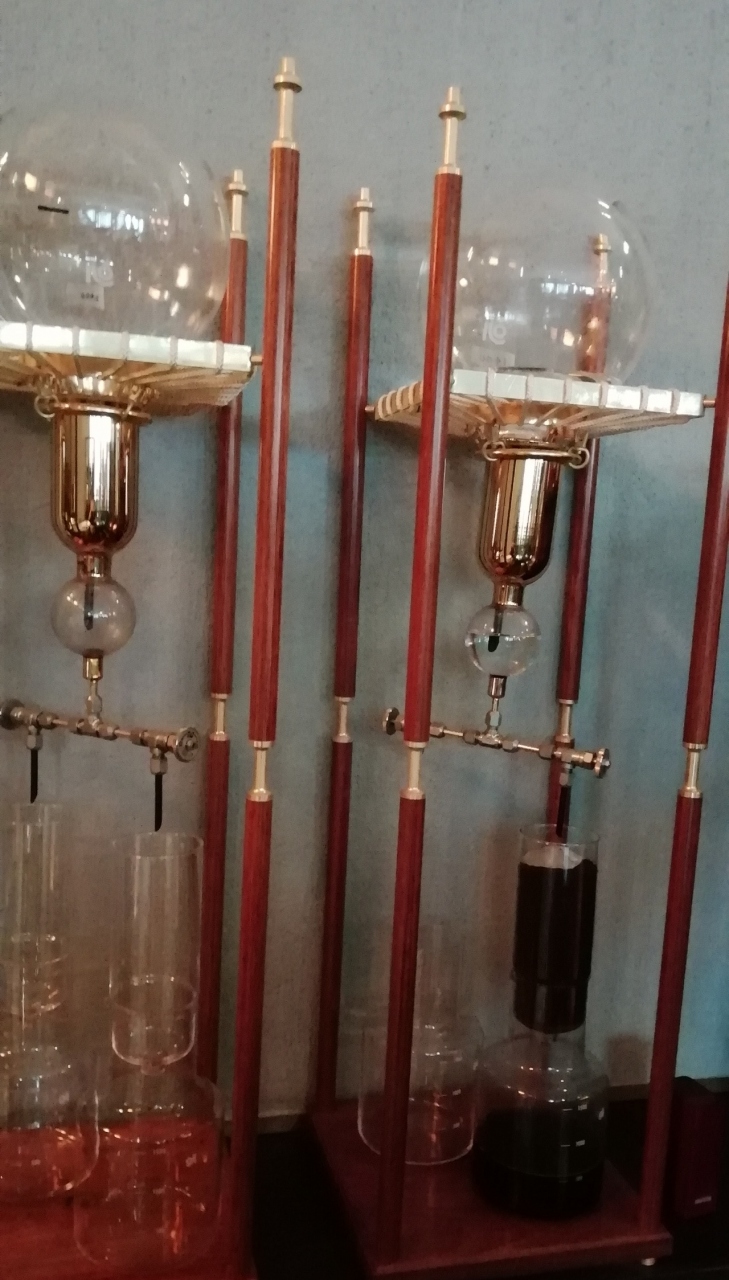 階段の所に1メートルぐらいありそうな巨大な水出し器具があり、珈琲の水出しがされていました。