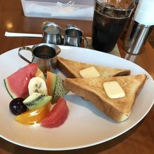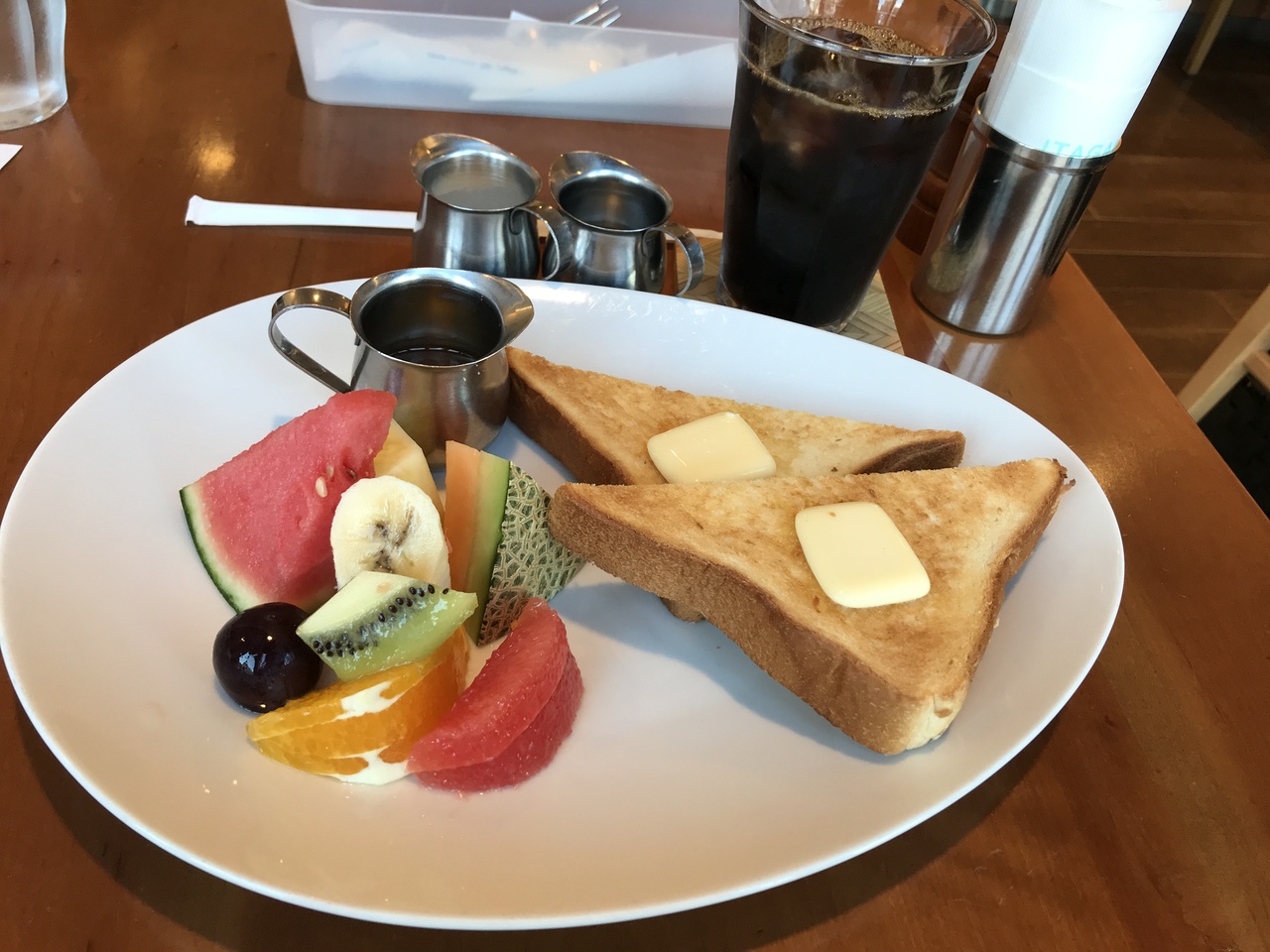 フルーツとトースト、コーヒーか紅茶が付いて600円くらいでした。