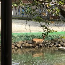 東大寺に行く途中にあったので参拝しました。氷室、つまり氷の神様とは珍しいですね。現在の奈良=かき氷というのにも理由があるんですね。参拝しやすい場所にあるので、ぜひ。それから、あまりの暑さのためか、境内の池に鹿が入っていました。