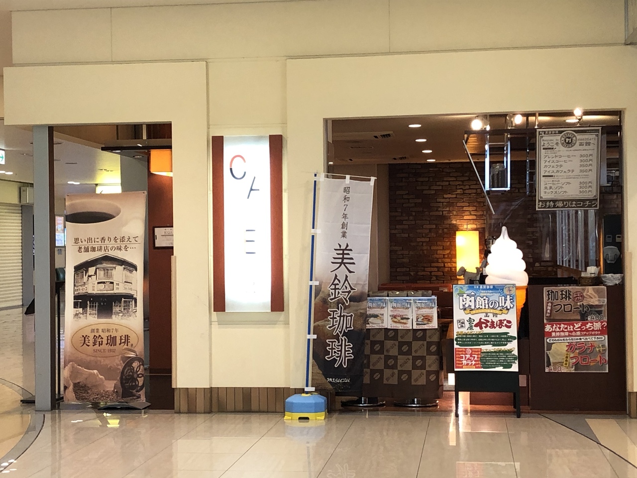 函館空港の1階に美鈴コーヒーのカフェが入っています。