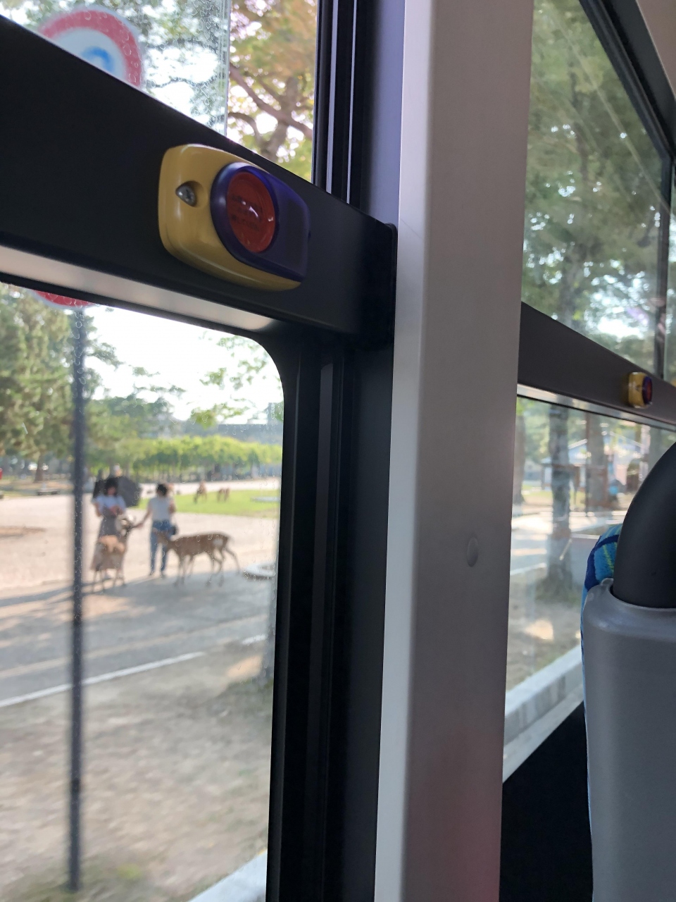 東大寺など見学の後、あまりの暑さに奈良公園からJR奈良駅までバスに乗りました。氷室神社向かい側ぐらいにある停留所からでしたが、その停留所に来るバスはすべて、近鉄奈良駅とJR奈良駅には行くので、本数も多く、便利でした。