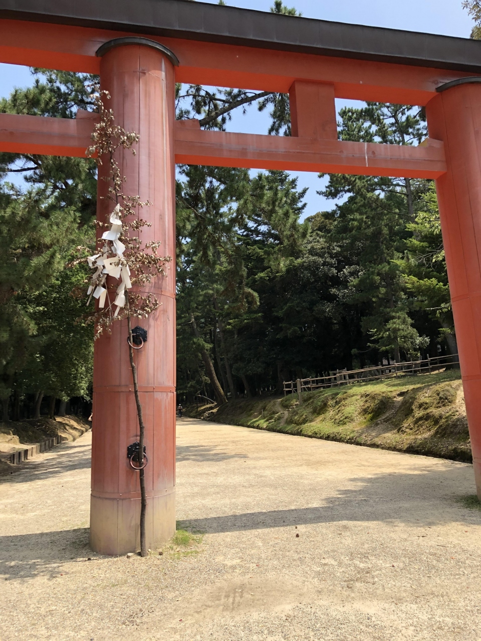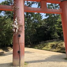 赤い鳥居は目立ちます。なんでこんなところに鳥居が?と思っていたのですが、春日神社の鳥居なんですね。それにしても、この一之鳥居から春日大社まではけっこう距離があります。鳥居前の道路はとても交通量が多いので気を付けてくださいね。