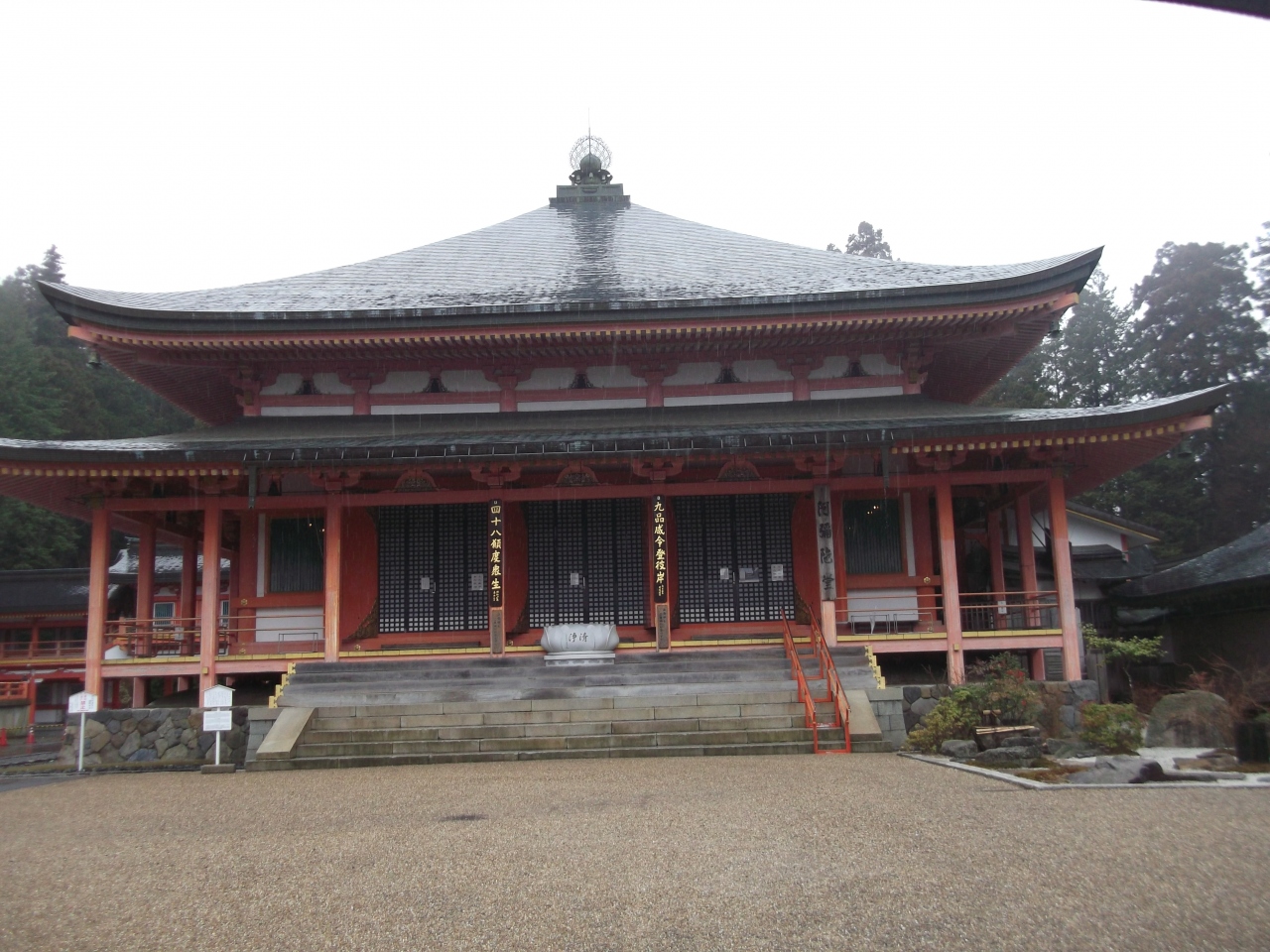延暦寺東塔エリアの端のほうにある昭和のはじめに建てられたお堂で、本尊として阿弥陀如来が祀られています。横に大きく広がる堂々とした造りのお堂で、朱塗りの柱とどっしりとした屋根が印象的です。すぐ隣に建つ東塔と横に並んで見える景観は圧巻です。