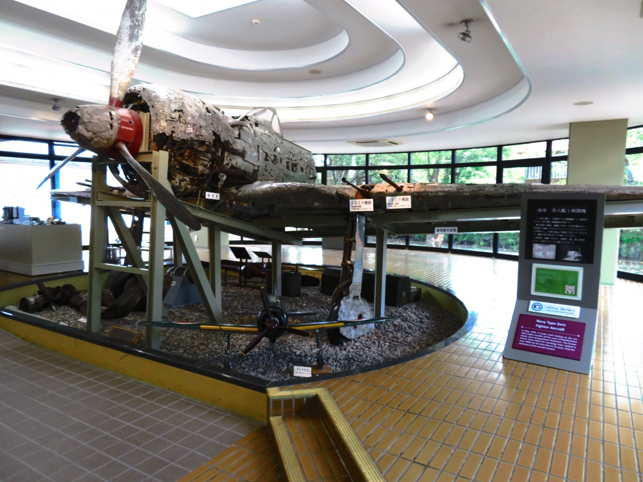ここは、第二次世界大戦末期の沖縄戦において、爆装した飛行機もろとも敵艦に体当たり攻撃をした特攻隊員の遺品や関係資料を展示している場所です。遺書展示室には、様々な人を大切に思い、最後の言葉を必死につづっている若き特攻隊員の遺書や顔写真などが展示されており、涙なしでは見られません。