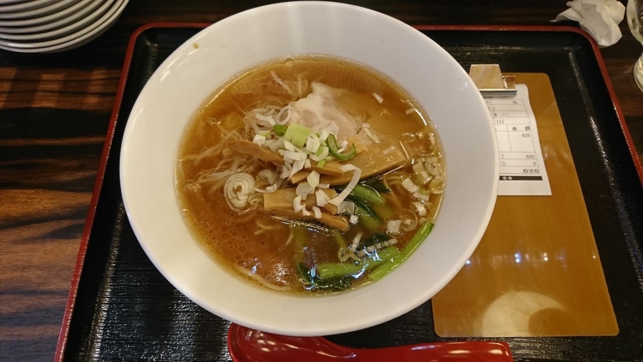 大手町の地下飲食店街・Otemachi Oneにある餃子で有名な中華料理レストランです。夕食で醬油ラーメン620円をいただきました。具はチャーシュー、メンマ、青菜、ネギで、コシのある中華麺と動物系の醤油スープの一品です。スープに独特な旨みが有り、癖になる味。美味しい醤油系スープだと思いました。