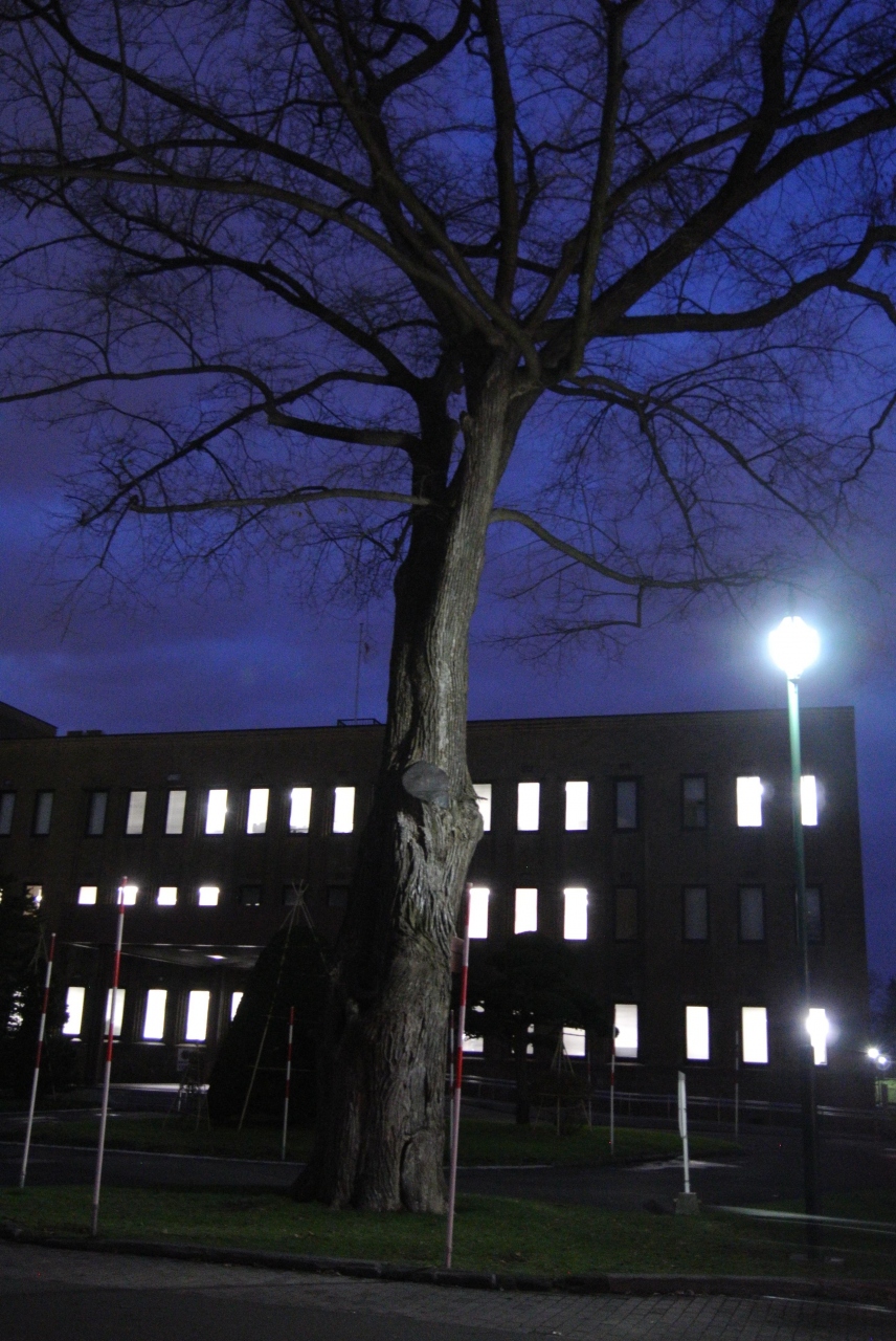 ニレの木は知っていますが、ハルニレというのは初めて知りました。北大の正門を入るとすぐ右手にありますが、葉がすべて落ちていました。木だけなら目立たないでしょうが、新渡戸稲造夫妻の写真入りの説明書きがあるので、わかりやすいです。