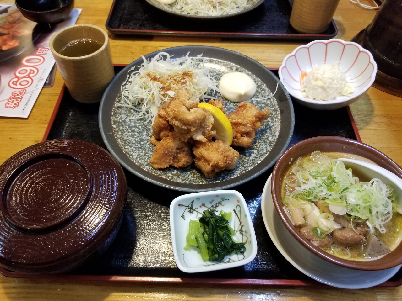 ランチタイムに利用した。久しぶりのテングでモツと唐揚げが突いたセットがあったのでオーダーした。