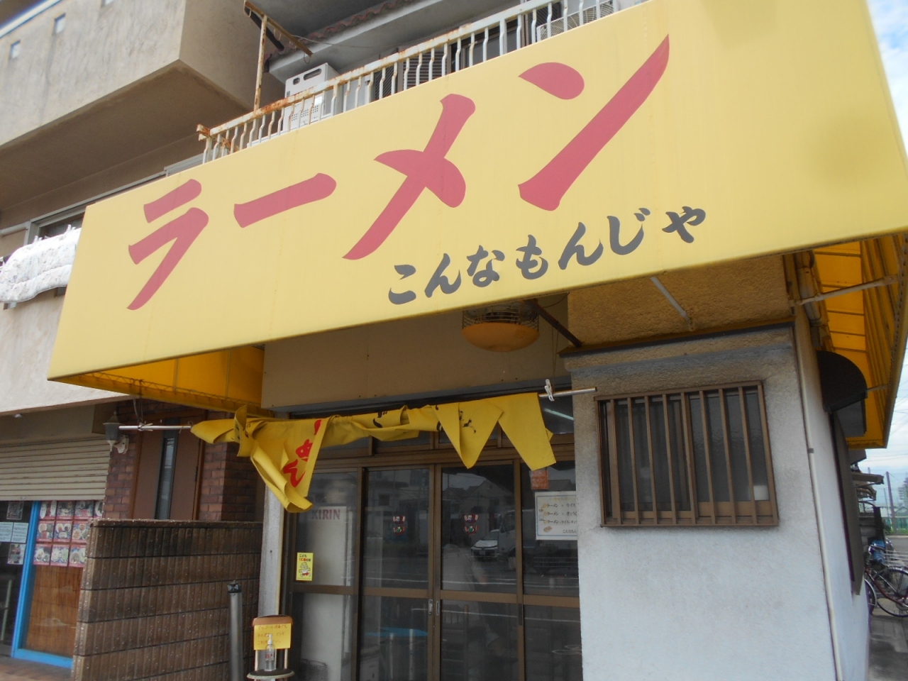 黄色いテントに大きく「ラーメン こんなもんじゃ」と