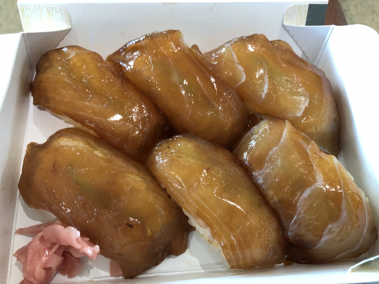 甘い醤油の漬けのしっとりとした島寿司+生ビールの組み合わせが堪らないです。