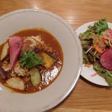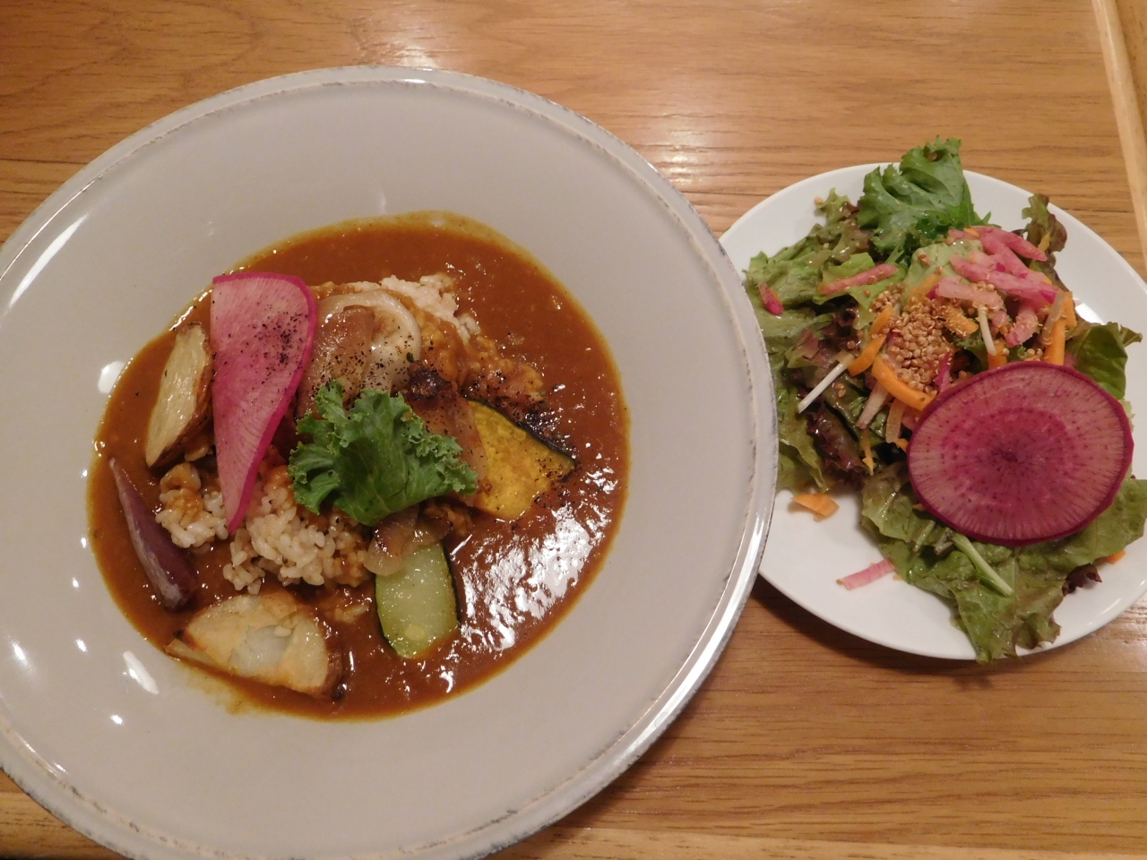 日比谷シャンテの地下2階レストラン街にある、オープンカフェのようなおしゃれな雰囲気のオーガニックレストランです。店頭にランチメニューの紹介があり、美味しそうだったので、期間限定の薬膳カレーを注文しました。店内はほとんどが女性客で、ゆったりとランチをする事が出来て良かったです。