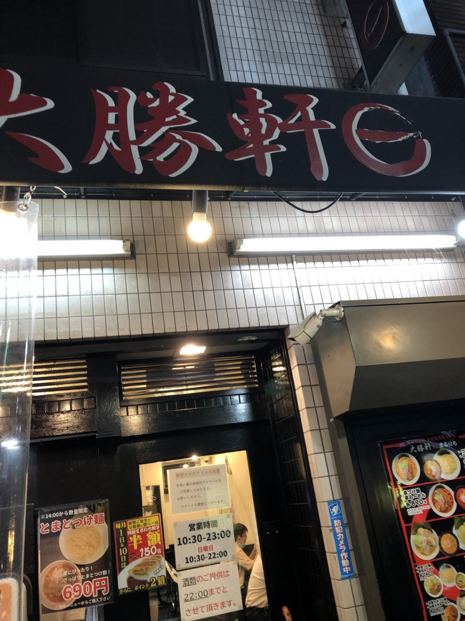 大勝軒。あの池袋の系列店みたいです。飲んだあとにラーメンをいただきました。つけ麺をいただきましたが大勝軒から多少変化系かなと思います。1日、10日は餃子が半額。もちろんいただきました。ラーメンとしては美味しいですよ。