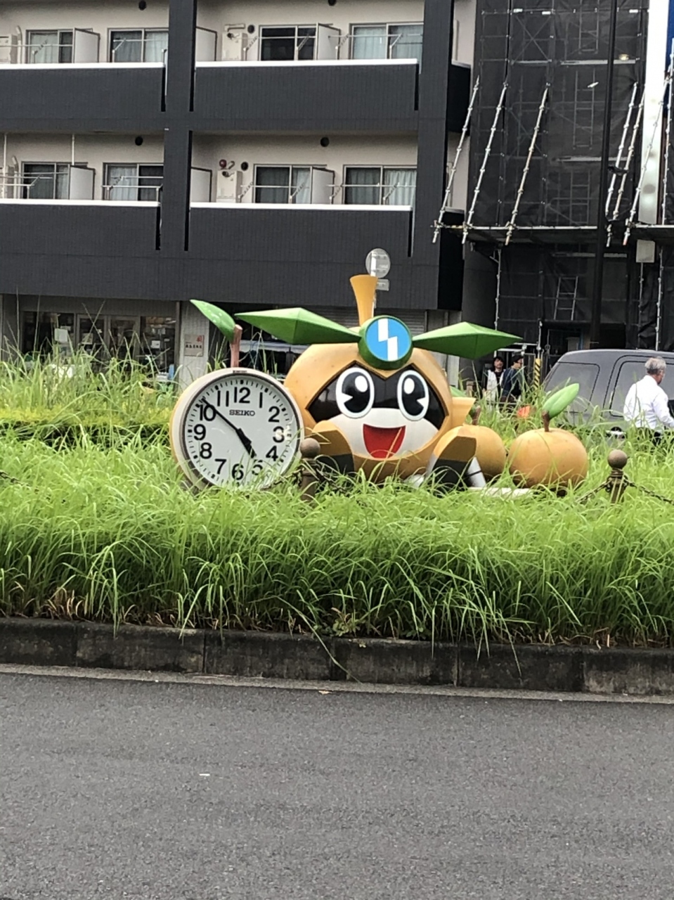 ちょっとしたロータリーには、稲城市のマスコット「稲城ナシノスケ」のオブジェがありました。