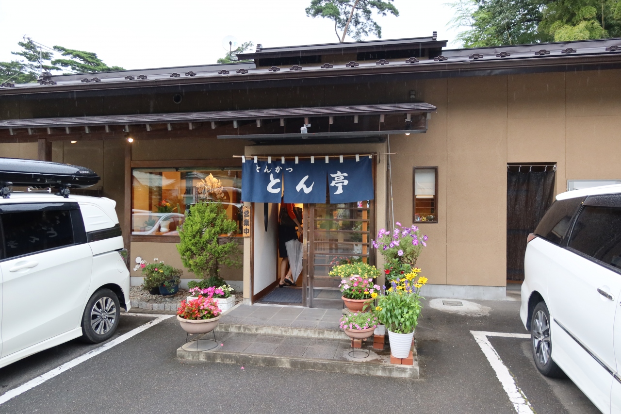白河の名勝地 南湖公園の南側、国道289号線に面した所にあるとんかつ店です。夜の7時頃行くと沢山の客でにぎわってました。店内は広く、奥にも座敷席があります。頂いたのは特上ロースカツ定食2000円。この値段でなんと260gのボリューム。味も、量も大満足のとんかつ店した。