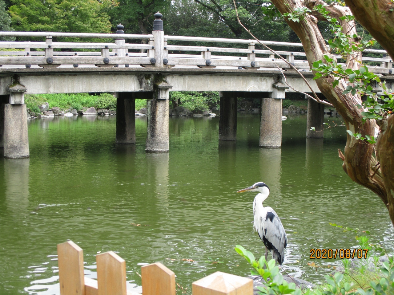京都御苑の迎賓館を見学した後、地下鉄丸太町駅に向かって、歩いていたら、厳島神社の案内板を見つけ、進んでいったら、池と橋がありました。池には亀がうじゃうじゃいて、更にすっぽんまでいて、近所の方らしい親子連れが楽しんでいました。