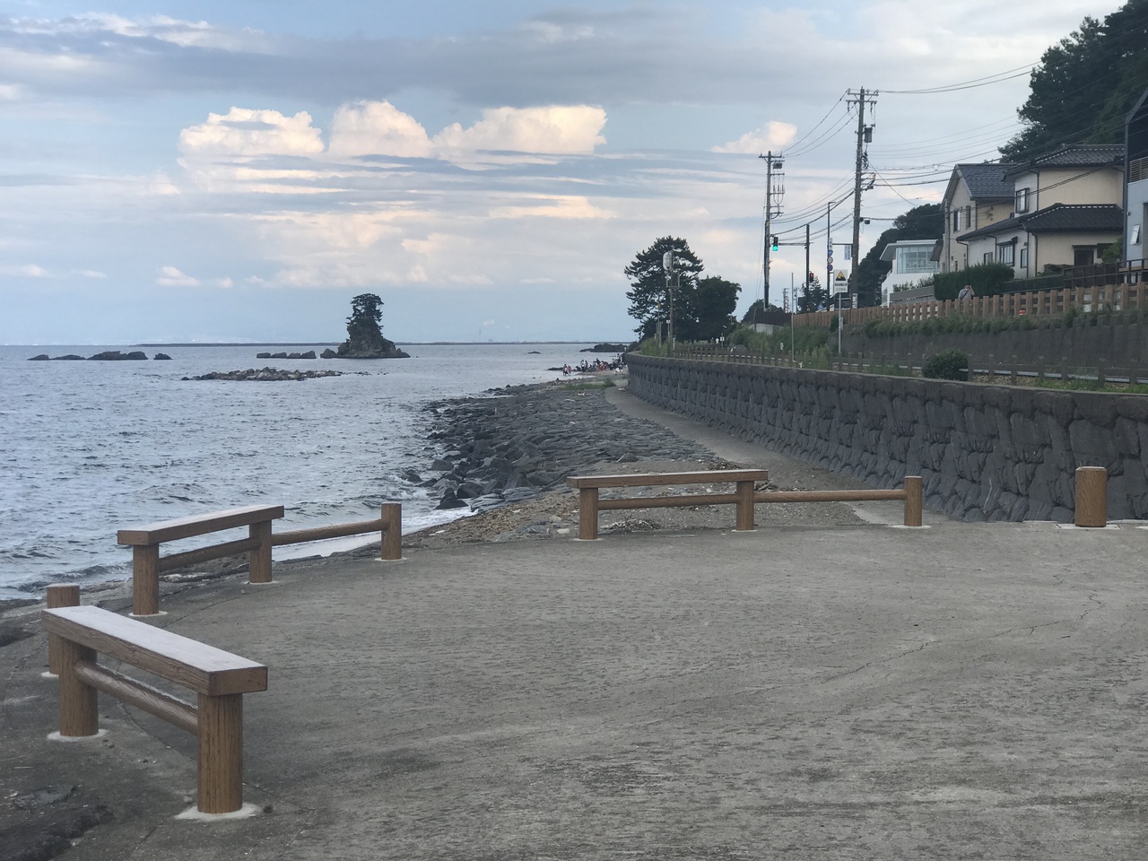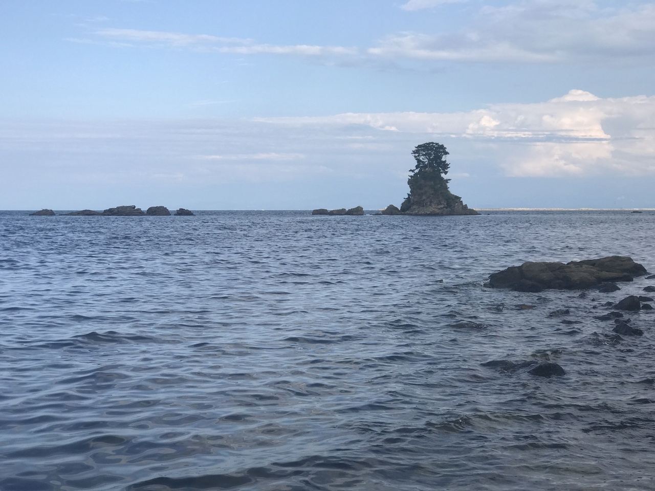 能登線で氷見に観光に行った際、レンタサイクルを利用すると雨晴駅でも返却可だったので行ってみました。氷見から30分くらいで着きました。天候によっては海の向こうに立山連峰が見える有名な海岸ですがこの日は見えませんでした。しかし真夏日だったので、海に入る人が多くいました。雨晴駅から近く国道沿いにあるのでアクセスも簡単です。また道の駅雨晴もすぐ近くにあるので食事や買い物も簡単に楽しめます。義経が雨宿りしたと言われる義経岩があり、雨晴とはそこからきているそうです。今度は立山連峰、女岩、日本海をここから見てみたいです。