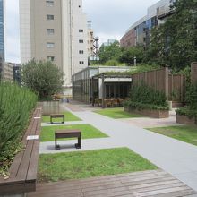 神谷町駅出口1から1分の森ビルです。オフィスとマンションが入っていて、一般が利用できるのはコンビニ、ベーカリーカフェ、レストランです。桜田通りに面していて、2階部分に木が見えたので桜田通りの歩道橋から行ってみました。ベーカリーカフェの2階部分とタワーの間に芝生とベンチがありちょっとした憩いの場になっていました。喫煙場所を木造塀が囲み、外から見えないように配慮されていました。気に入っているベーカリーカフェが入っていることがわかったので利用したいです。