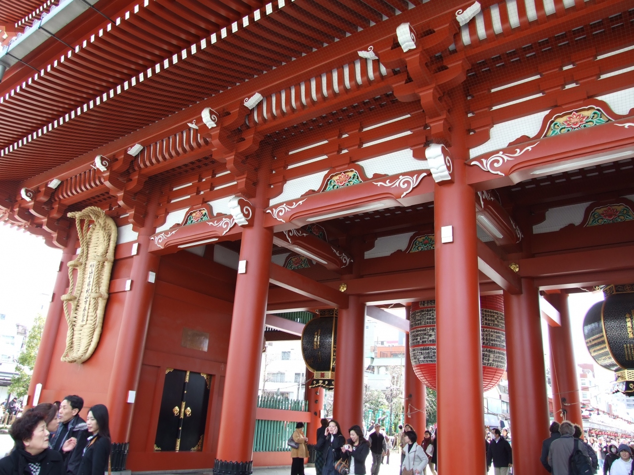 今や、江戸情緒を残す唯一の名所と言えるのではないでしょうか。雷門をくぐると、朱塗りのお堂が色鮮やかです。今のように外国人観光客の姿が見られないようになる以前は、人波を掻き分けて歩かねばならないほどでした。