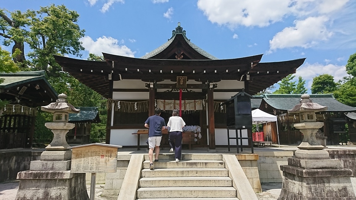 京都市北区衣笠天神森町に鎮座している神社です。2018年6月の京都観光時、北野天満宮から金閣寺へ徒歩で移動している途中に立ち寄り参拝させていただきました。安産祈願で有名な神社で、私が立ち寄った時にも、境内には若い女性の姿が目立っていました。なお正式名は敷地神社です。