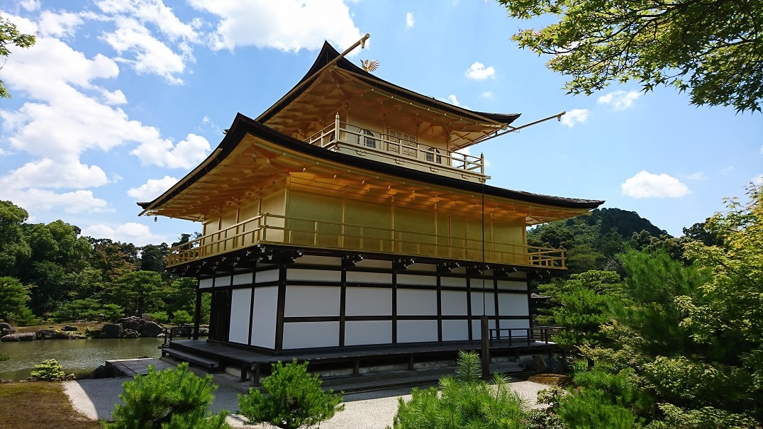 京都市北区にある臨済宗相国寺派の寺院で正式名は鹿苑寺です。金箔を貼った3層の楼閣建築である舎利殿・金閣から金閣寺と呼ばれ、京都を代表する観光スポットとなっています。現在建っている建物は昭和30年(1955年)に再建されたものです。再建された建物とはいえ、金色に輝く舎利殿・金閣は見ごたえ充分。京都観光では外せない寺院です。