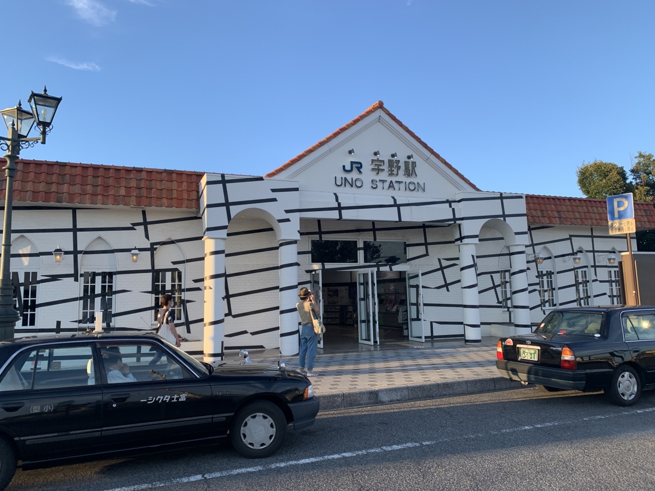 高松や直島からのフェリー発着がある宇野港から、3分程度の場所にある駅。