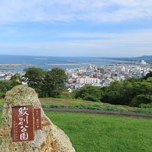 平地が少ない紋別。街は坂というより斜面を這い上がるように広がっています。たぶんこの公園もそういうことなんだろうという予想のもとに最短距離を求めずに地道に傾斜を上ってみると…。晴れていたせいもありますが、けっこう素敵な風景だったと思います。でも観光名所としては不毛な印象も。