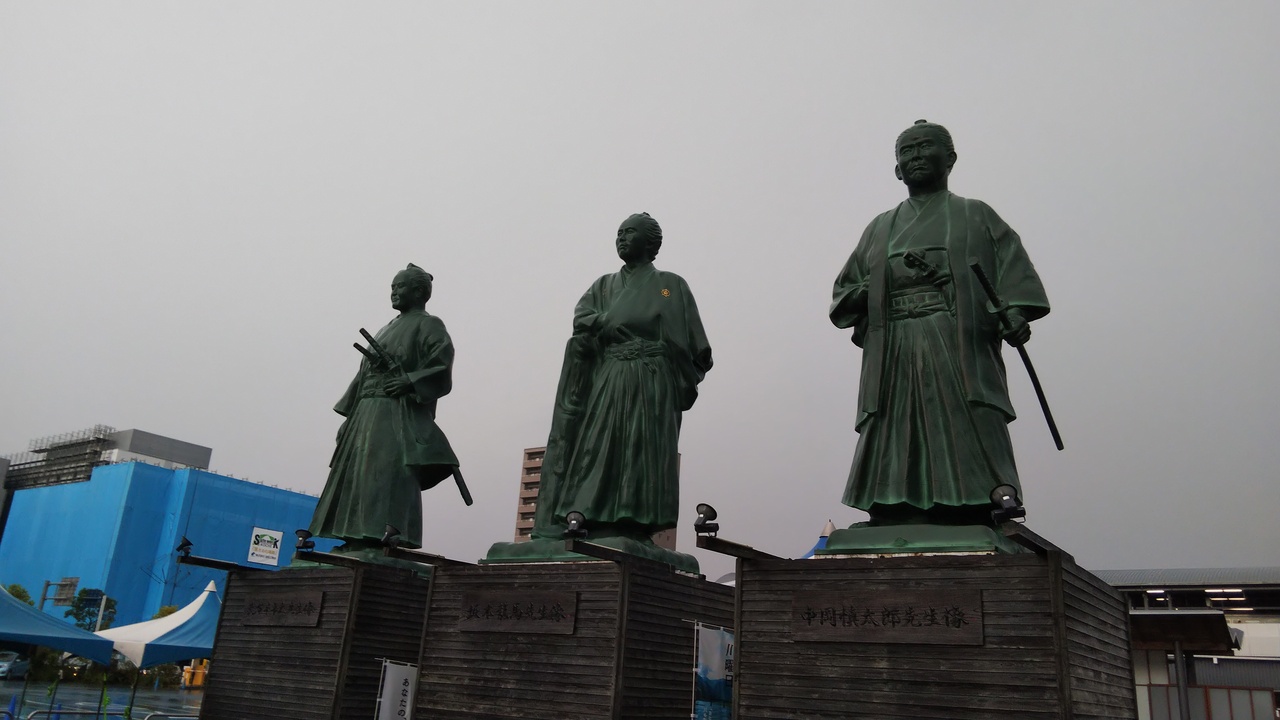 高知駅前の広場に立つ3人の像です。