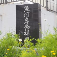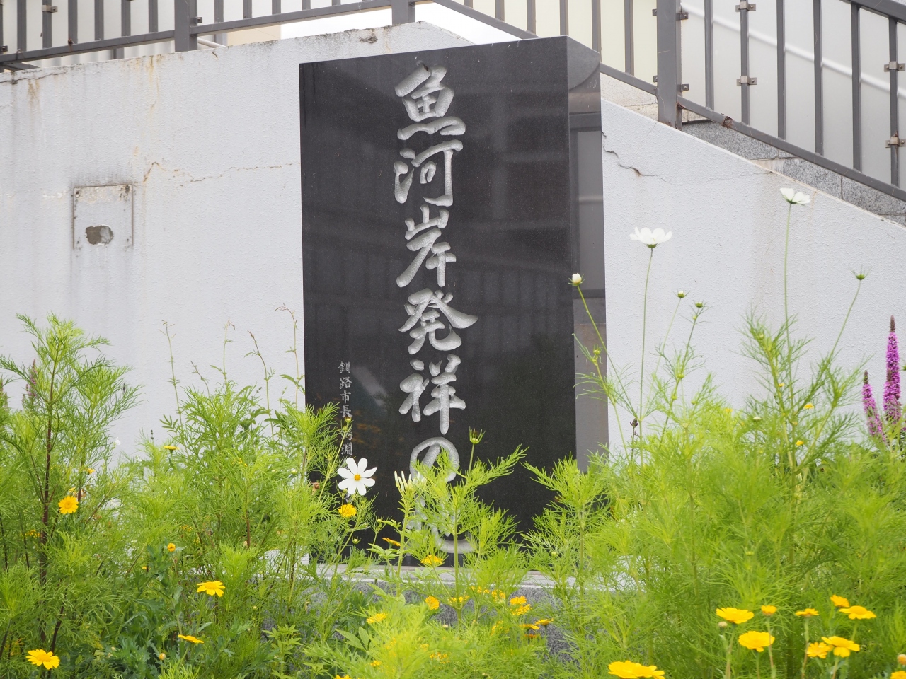 釧路川に架かる幣舞橋の橋のたもとをフィッシャーマンズワーフの釧路川沿いに降りたすぐの場所に魚河岸発祥の地碑があります。かつてはここに釧路港があり、多くの漁獲物が水揚げされた場所です。そのために魚河岸も生まれて、盛んに取引がされていたようです。今はフィッシャーマンズワーフのようにモダンな建物の建っている場所になっていますが、かつては威勢の良い男性などが商売をするにぎやかな場所であったということがわかる記念碑です。