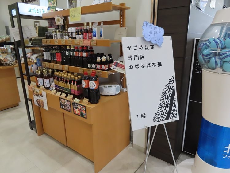函館駅前交差点の角にあるキラリスというビルの1階でおみやげ品が売られています。母体は「ねばねば本舗」という「がごめ昆布」のお店。「くりりんかぼちゃ」のソフトクリームを販売しているため、喫茶店営業の登録がされているようです。