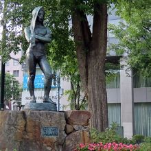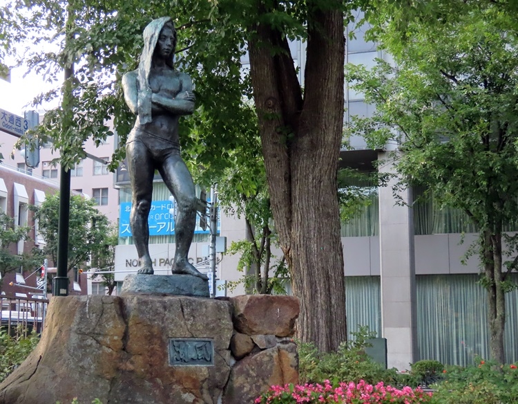 大通り公園の人物像の配置は北側が多いように思います。南を向いていたほうが鑑賞しやすいからでしょうか。その中でこの男性像は珍しく南側に配置され北を向いています。開拓時代のイメージ、というか、ポーズも含めてなかなか逞しく力強い作品です。