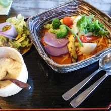 北鎌倉の建長寺入口のすぐ近くにある、とても雰囲気の良いお店です。靴を脱いで上がり、テーブル席に案内してもらいました。建長汁(けんちん汁)が有名で、建長汁とのセットも出来るようになっていました。今回は、湘南野菜10種類トマトソース生パスタを注文しましたが、とても彩り鮮やかに盛り付けられたパスタで、美味しかったです。他にも、ポットの中に湘南野菜の入ったお水のサービスがあったり、奥の素敵なお部屋の見学も出来、わざわざ訪れる価値のあるお店だと思いました。