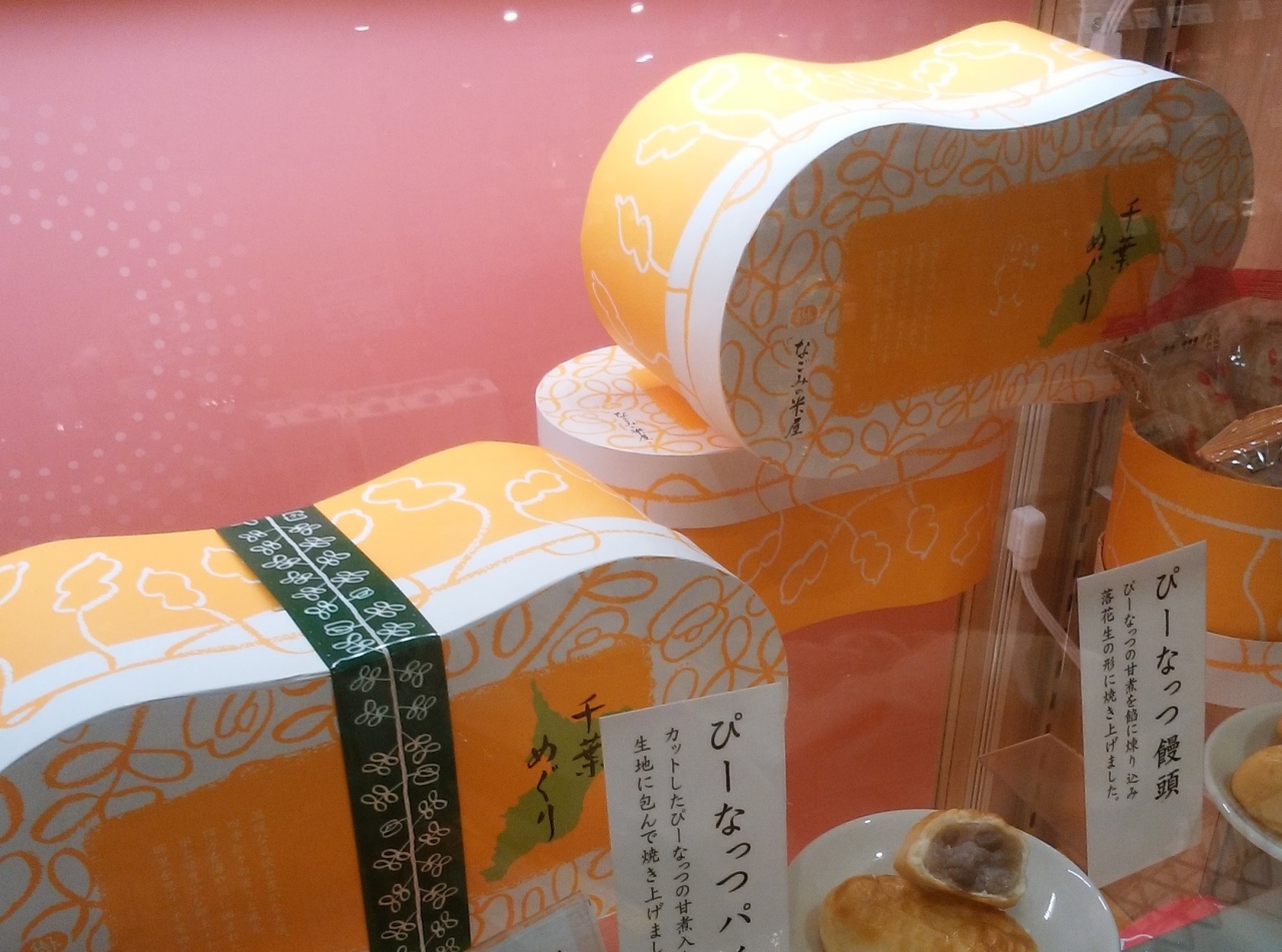 成田駅から成田山新勝寺に向かう参道沿いにある、成田の老舗和菓子の本店です。県内のデパートやスーパーにも出店してはいますが、さすがにここは本店だけあって店内は広く種類も豊富です。おなじみのぴーなっつパイだけでなく、羊羹、どら焼き、餅菓子などいろいろあって買うのに迷いました。