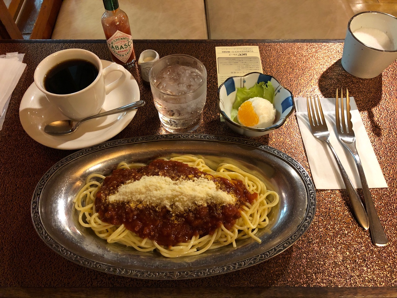 日之出ビルB1Fの、昔ながらの喫茶店です。今では珍しく、喫煙可能店です。「高級茶房」という店の看板が印象的です。大学の先生らしき人も来店していました。ミートソーススパゲティがおいしかったです。自家製ソースが甘めで、自分の好みでした。サラダ・ドリンク付きのイブニングセットで900円ぐらいでした。