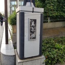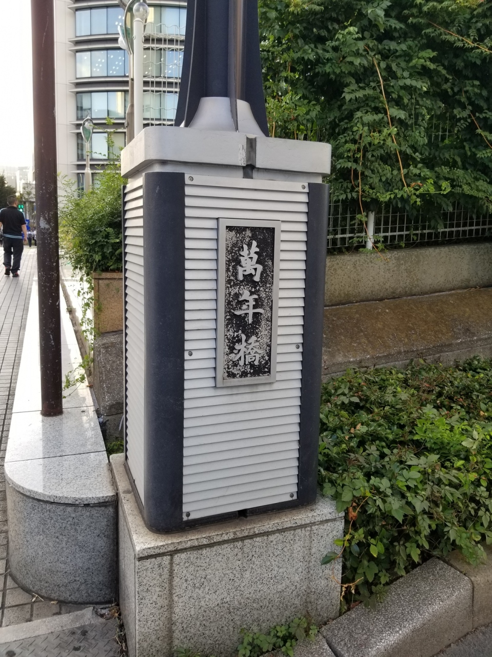 この橋の下には元々築地川が流れていた。川は昭和39年に埋め立てられ、現在は首都高速が走っている。