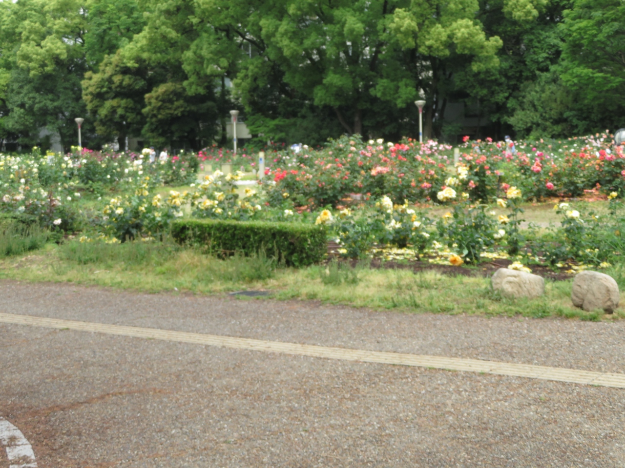 以前靭公園に行ったときは、冬に行ったので愛想のない感じでした。しかし、今回は、5月の花のシーズンに行ったので、花が咲き乱れてとても綺麗でした。コロナの緊急事態宣言の時でしたが、割と人が多かったです。花で心が癒されて、3密が防げるいい場所でした。